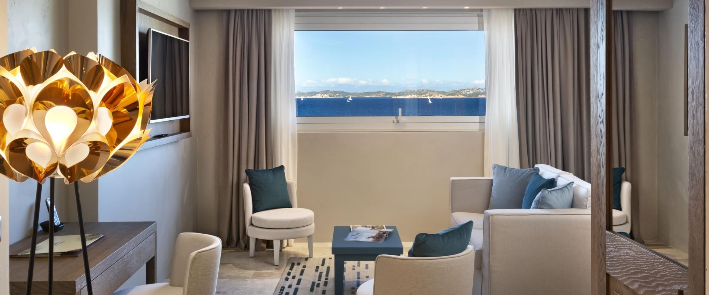Le camere e le suite dell'Hotel La Bisaccia riflettono il classico stile architettonico sardo, evocando suggestioni smeraldine e mediterranee.